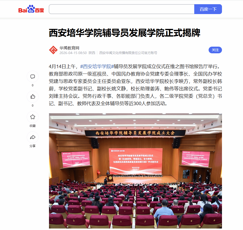 百度:西安培华学院辅导员发展学院正式揭牌