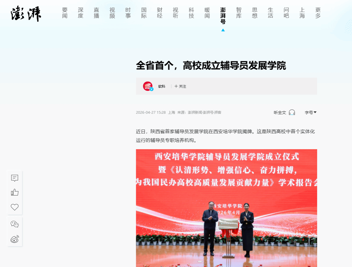 澎湃新闻:全省首个,高校成立辅导员发展学院