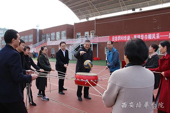 校领导与教职工一起体验“鼓动人心”项目