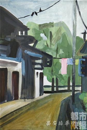 杨舒涵从小就喜欢画画,在她的老家宜川县城还参与过美丽乡村扶贫墙绘的创作,寒暑假还会兼职带绘画课。