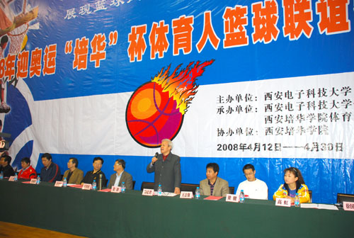 4月12日上午9:00,2008年迎奥运“培华”杯体育人篮球联谊赛在西安电子科技大学体育中心拉开帷幕。