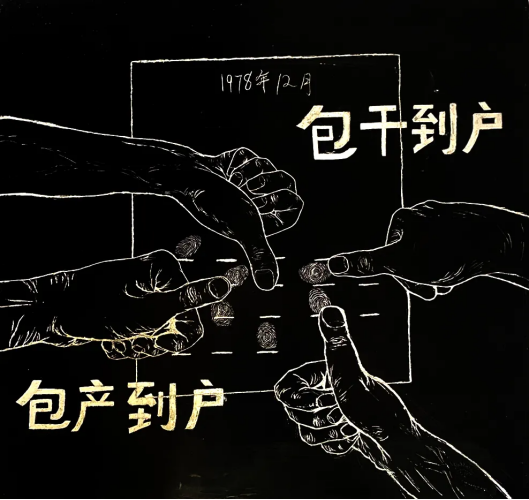 作品画面展现的1978年11月24日小岗村村民签下包干保证书的一幕。通过包产到户、包干到户,解决了十三亿人口的吃饱饭问题。民以食为天,在改革开放之前,广大人民群众都还在为吃饱饭而奋斗。这是一个了不起的成就,与我国国情相似的印度至今没有解决这个问题。