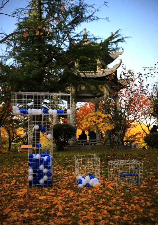 老师介绍,这次实物创作是临时性展览,依托现有环境进行设计;学生称,大学4年第一次做大型公共艺术作品,能得到同学们喜爱非常开心。
