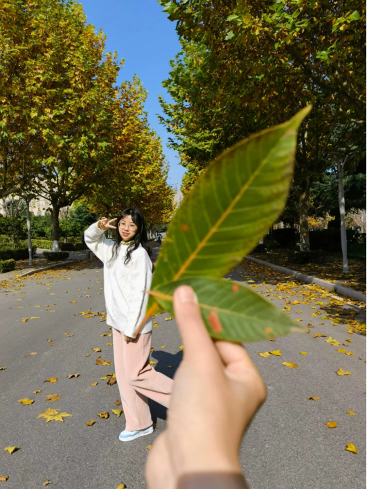 一个取景框透,过它看到的是培华的层林尽染,是培华的你,也因这一片卷起来的心形叶子,整个秋天都变成了爱你的模样。