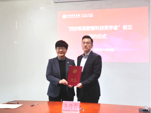 为实现校企双方资源共享,深化产教融合,11月16日上午,西安培华学院建筑与艺术设计学院与西安锐思数智科技股份有限公司(以下简称“锐思数智”)于汇知楼举行了企业奖学金设立签约仪式,并进行座谈交流。西安培华学院校长助理兼合作与发展办公室主任秦海锋,西安培华学院建筑与艺术设计学院常务副院长徐莹,党委宣传部部长、校友服务与发展中心主任柳雨,建筑与艺术设计学院党委书记兼行政副院长权勇太等领导及锐思数智总裁赵航、人力资源总监李敏等出席了仪式。