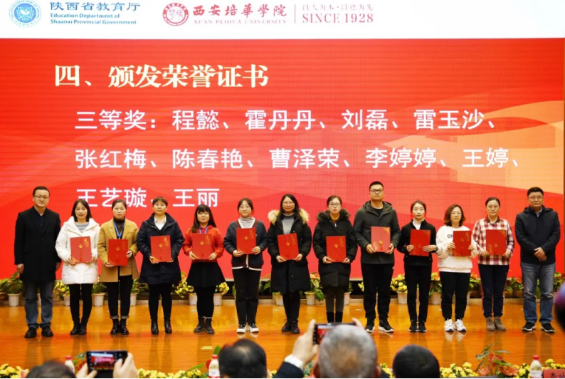 3日,此次展示活动在西安培华学院图书馆报告厅举行闭幕式,闭幕仪式由陕西省教育厅基础教育二处处长陈娟主持;西安培华学院理事长姜波为全体教师赠送定制纪念品;西安培华学院校长李映方宣布展示活动获奖结果;与会领导为一二三等奖获奖老师颁发证书。