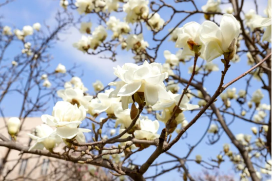 玉兰花开放,迎着春日的艳阳,迎着新季的晖光,再一次将培华校园细细打量。