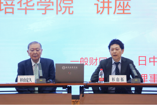 6月5日上午,西安培华学院于明德楼四楼报告厅举办了日中人才育成协会理事长杉山定久先生的“光明的未来”主题报告会。学校理事长姜波、副校长刘越莲出席会议。医学院和人文与国际教育学院领导、相关师生聆听报告。报告会由日中人才育成协会理事杉山拓先生翻译,人文与国际教育学院外语系主任兼日语专业带头人李国栋主持。