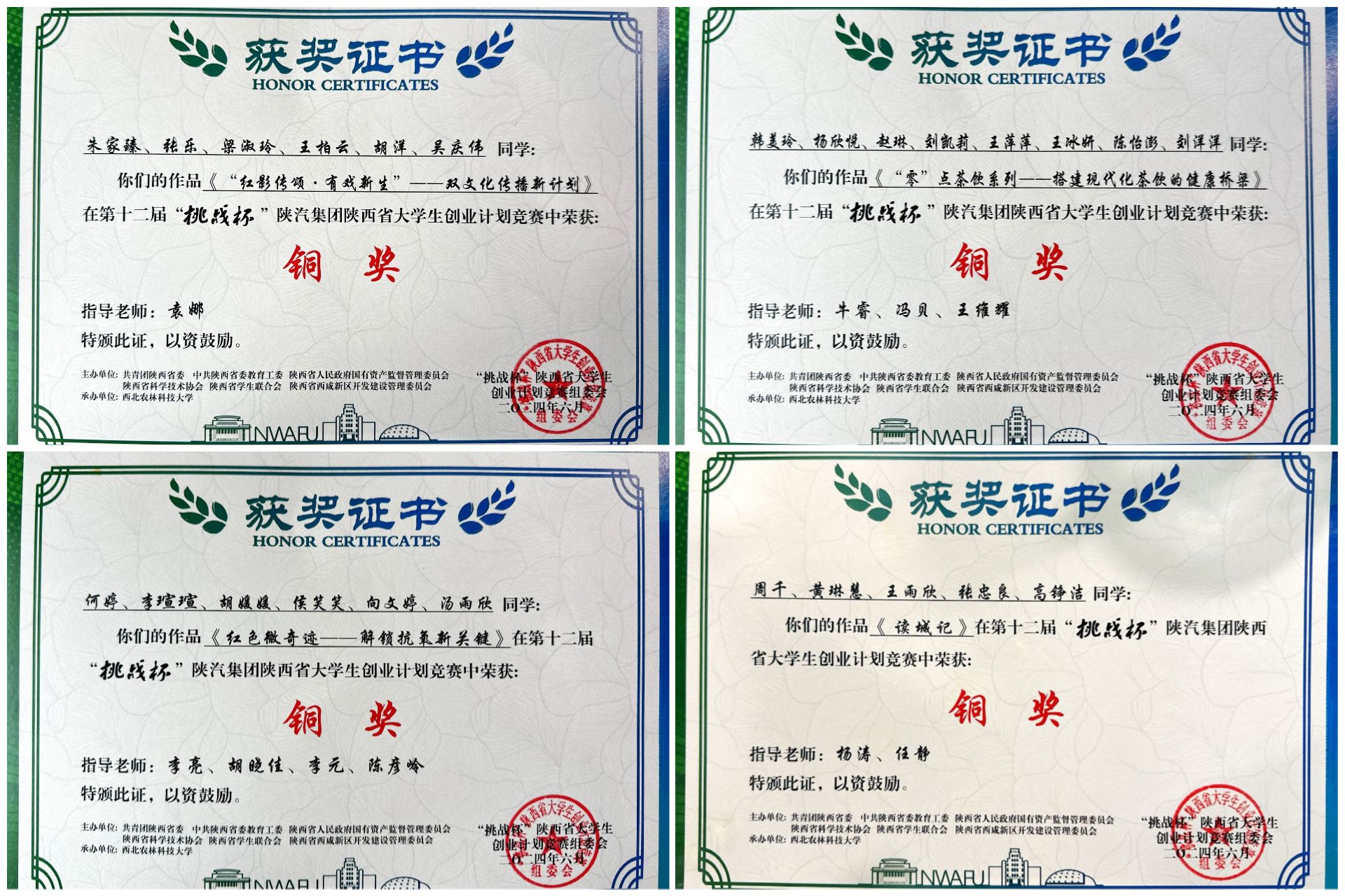 6月7日上午,第十二届“挑战杯”陕汽集团陕西省大学生创业计划竞赛闭幕式暨颁奖仪式在西北农林科技大学举行。学校4项作品闯入终审决赛,荣获4项铜奖。