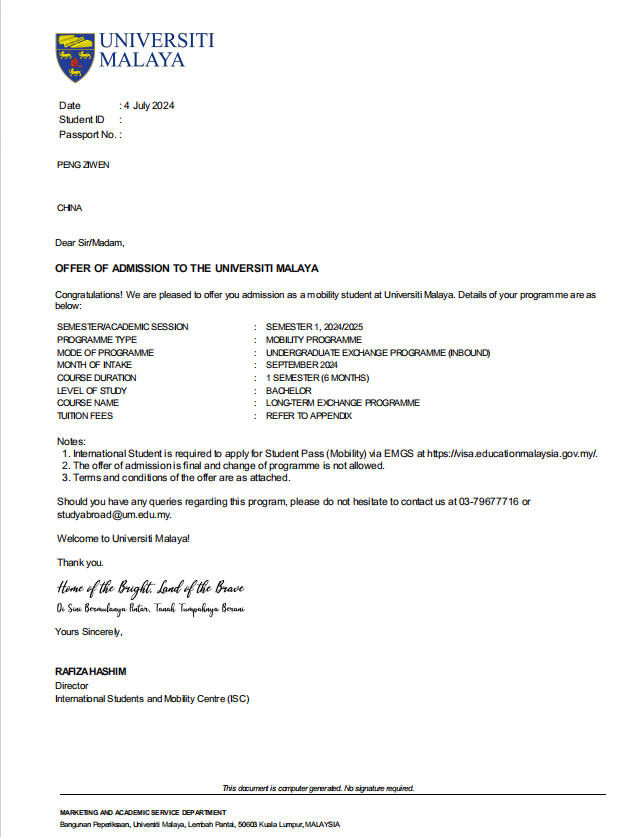 近日,马来亚大学2024年秋季本科交换生项目录取结果公布,西安培华学院传媒与设计学院麦晓凝、彭子雯,人文与国际教育学院陈蕾依成功入选,学校申请学生实现100%录取。9月,上述同学将赴马来亚大学开展为期6个月的学习生活,不断开拓国际化视野、提升跨文化交际能力。