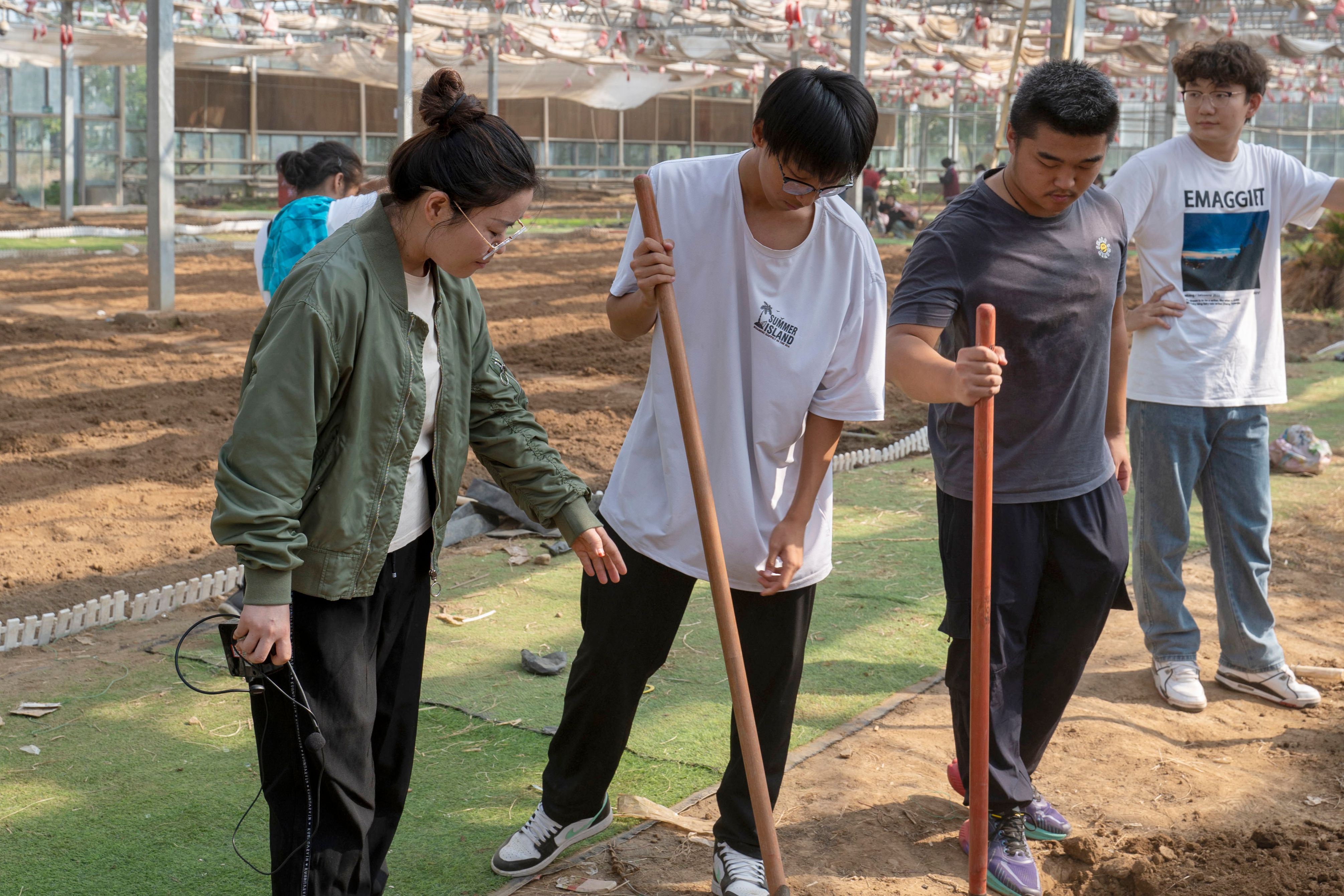 劳动正式开始,同学们纷纷投入到了紧张的劳作中翻土、播种、犁地,每一步都专注而认真。