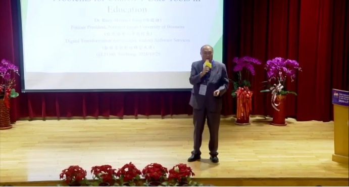 会上,前台北商业大学校长张瑞雄教授进行专题演讲,题目为《教育中ChatGPT工具衍生的相关问题》。