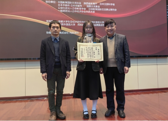 11月2日,第25届中国大学生日语才能演示大赛在西安外国语大学长安校区举行。学校人文与国际教育学院外语系日语专业2022级王静怡同学获得一等奖,并获得受邀访问日本的机会,小泽一博老师获优秀指导奖。学校获最优秀院校奖。