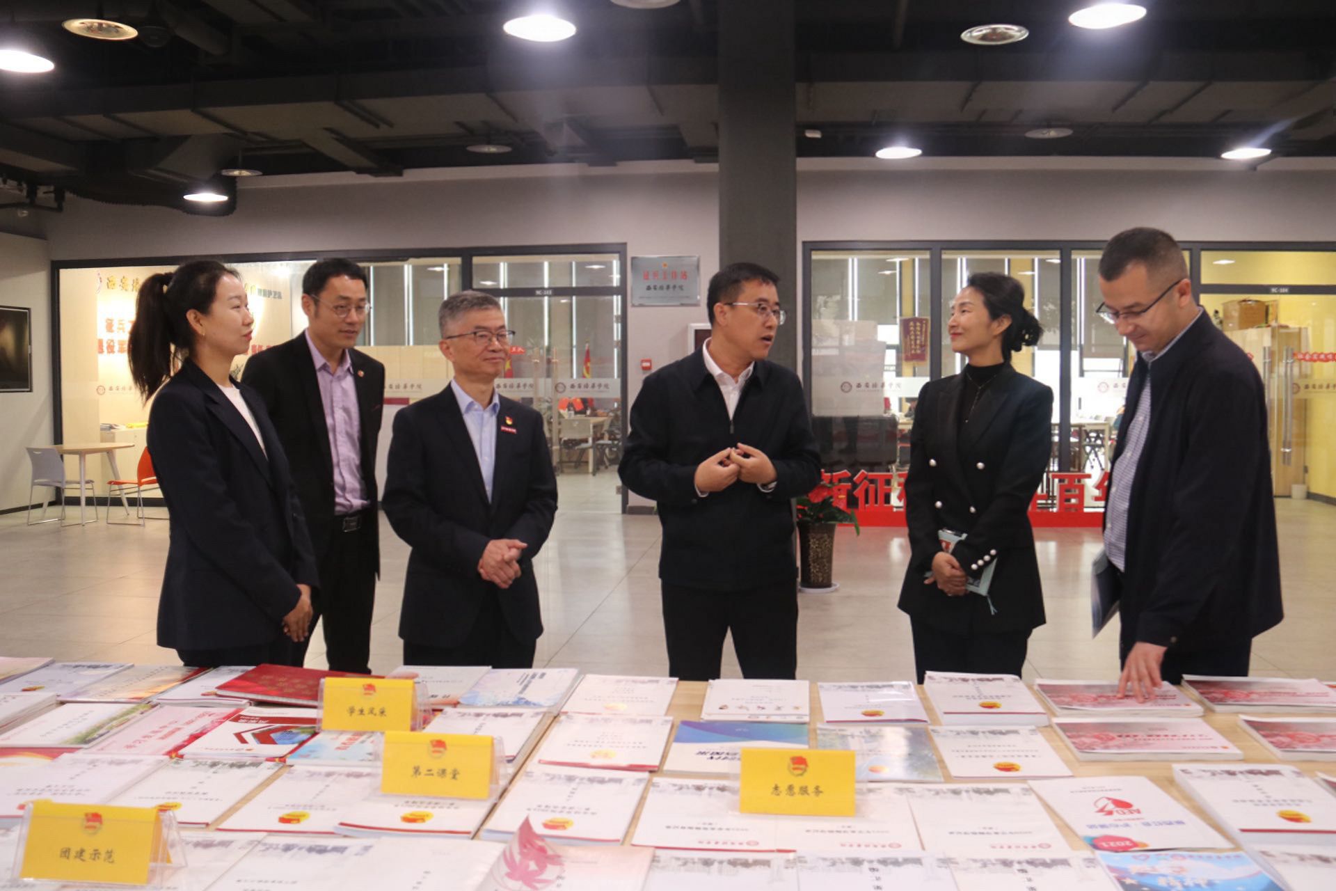 座谈会结束后,校团委书记董莹携各位领导前往恒友楼大学生文体中心、陕西普通高校心理健康教育与咨询示范中心以及校史馆进行实地参观。