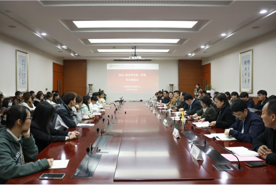 为全面了解和掌握学生在思想、学习、生活等方面的情况,广泛征集学生对学校工作的意见和建议,2024年11月13日下午,发展规划与质量建设中心在明德楼第一会议室组织召开了学生座谈会。常务副校长胡俊生、校长助理鲍伟以及教务管理中心、学生服务中心、招生与就业指导中心、图书馆、信息中心、后勤服务中心、发展规划与质量建设中心(教育教学督导办公室)有关领导与来自各学院的54名学生代表进行了座谈交流,主任助理全婧主持会议。