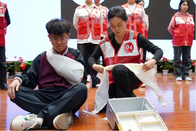 比赛为团体赛,采用“现场实操+理论问答”的赛制,全方位、多角度考核参赛队员的应急救护能力。参赛队员凭借扎实的急救知识和娴熟的操作技能,在紧张的比赛中展现出良好的心理素质和团队协作精神。特别是实操环节,参赛队员能够及时准确判定患(伤)者身体状况,第一时间采取对应的急救措施,高标准完成心肺复苏、止血包扎、骨折固定等一系列应急救护操作,集中展现了新时代青年的应急救护专业素养和实践能力。