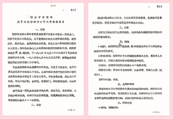 西安培华女子大学筹集图书项目申请报告,用于女大图书馆建设。