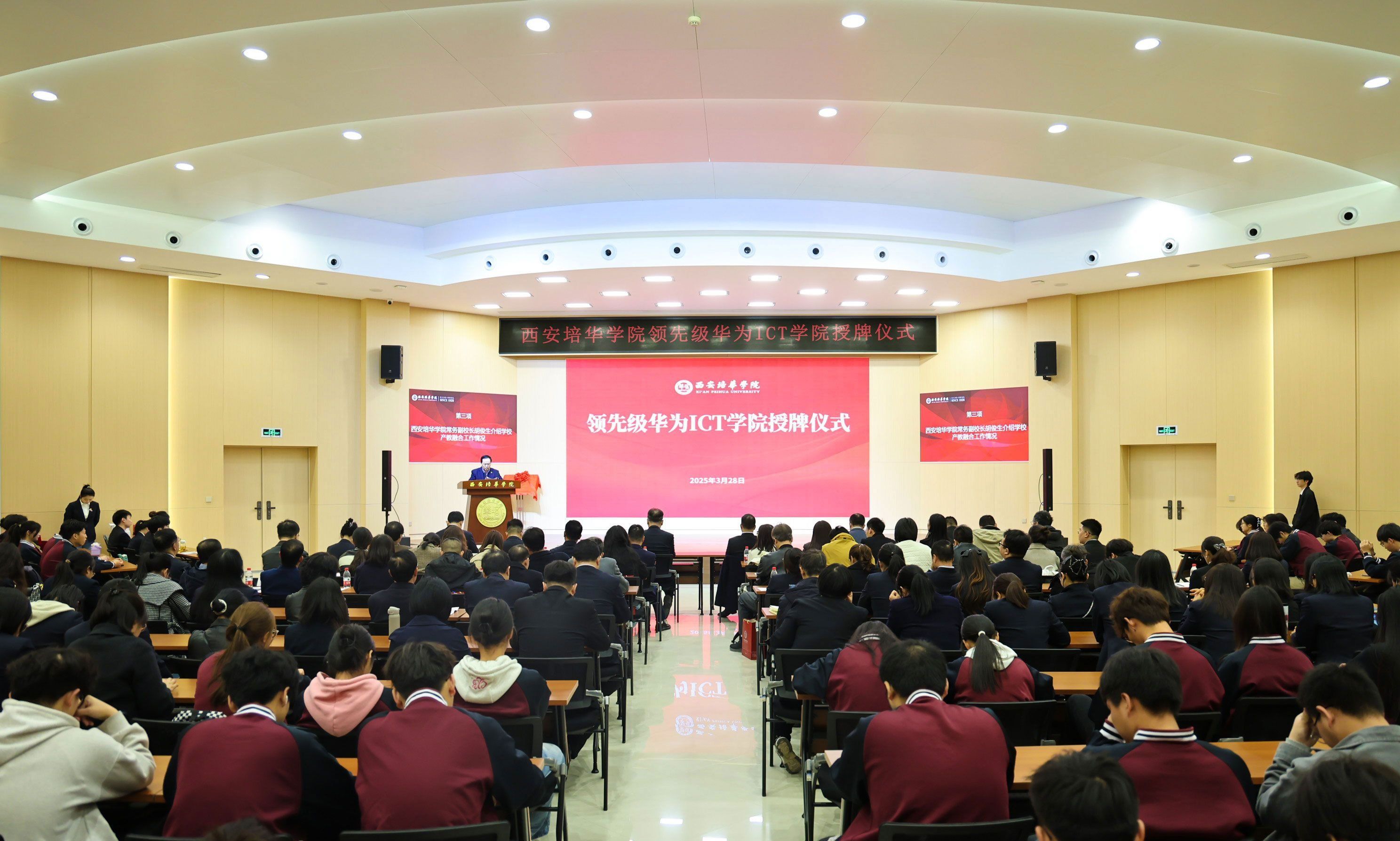 3月28日,西安培华学院领先级华为ICT学院授牌仪式暨颁奖典礼在明德楼四楼报告厅举行。本次活动汇聚了企业代表、兄弟院校代表、学校领导及智能科学与工程学院师生代表,共同见证学校在ICT领域产教融合发展的重要里程碑。