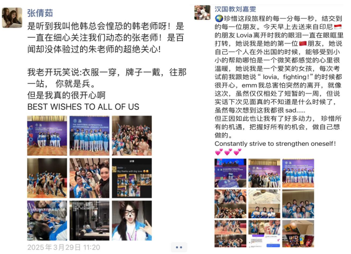此次志愿服务是人文与国际教育学院深化“专业+实践”育人模式的重要成果。学院通过定向选拔、礼仪培训、模拟实训等环节,全方位提升学生综合素养。带队教师朱林鹏表示:“学生们将课堂所学转化为服务能力,用实际行动诠释了当代青年的社会责任感。”志愿者队长、英语专业2022级学生张倩茹感慨:“这次经历让我深刻体会到,语言不仅是交流工具,更是连接世界的纽带。”