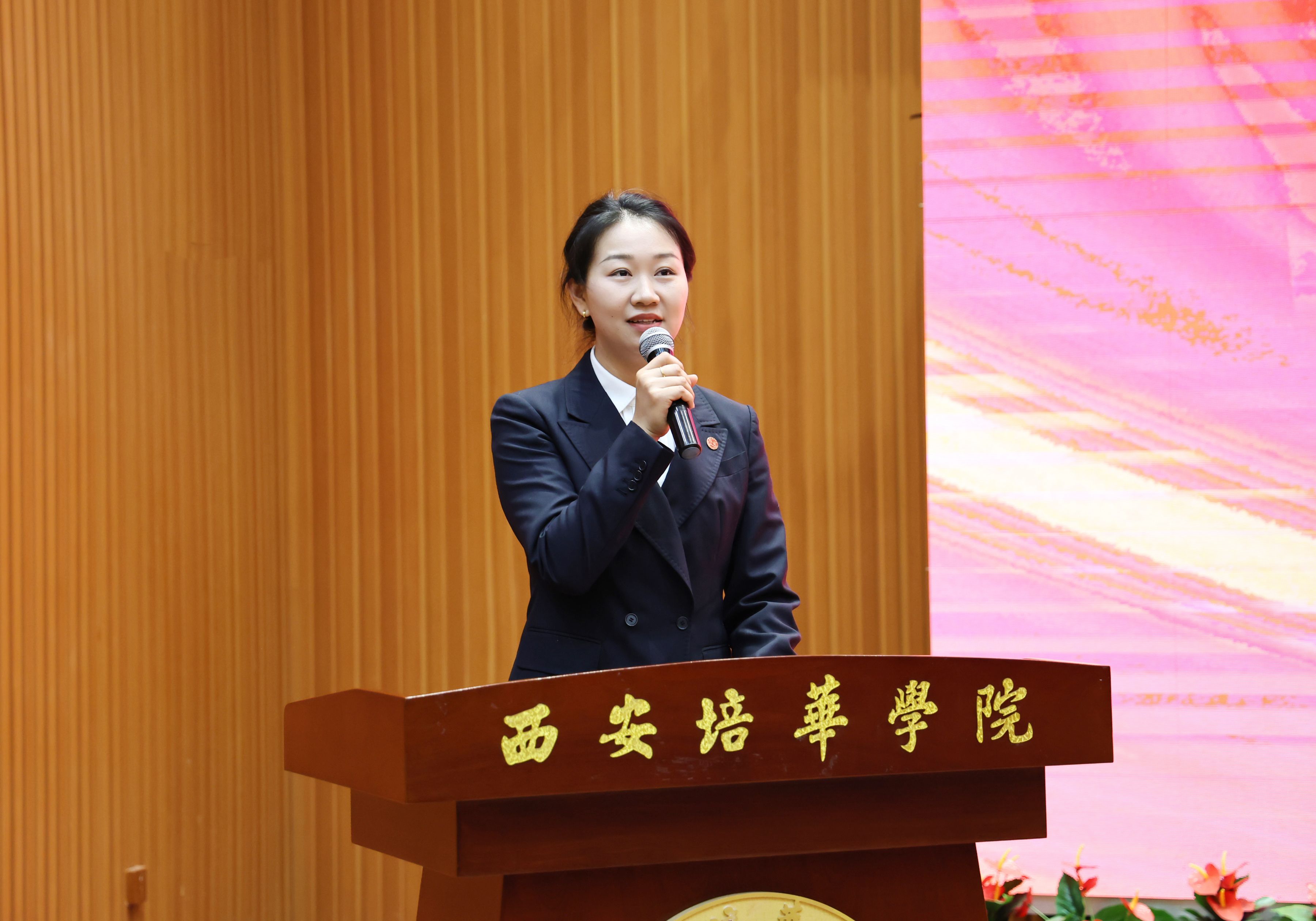 校团委书记董莹老师宣读《西安培华学院关于表彰2025年寒假“五育并举”返家乡系列社会实践活动优秀组织单位、示范(标兵)团队、优秀指导教师、先进个人的通报》。