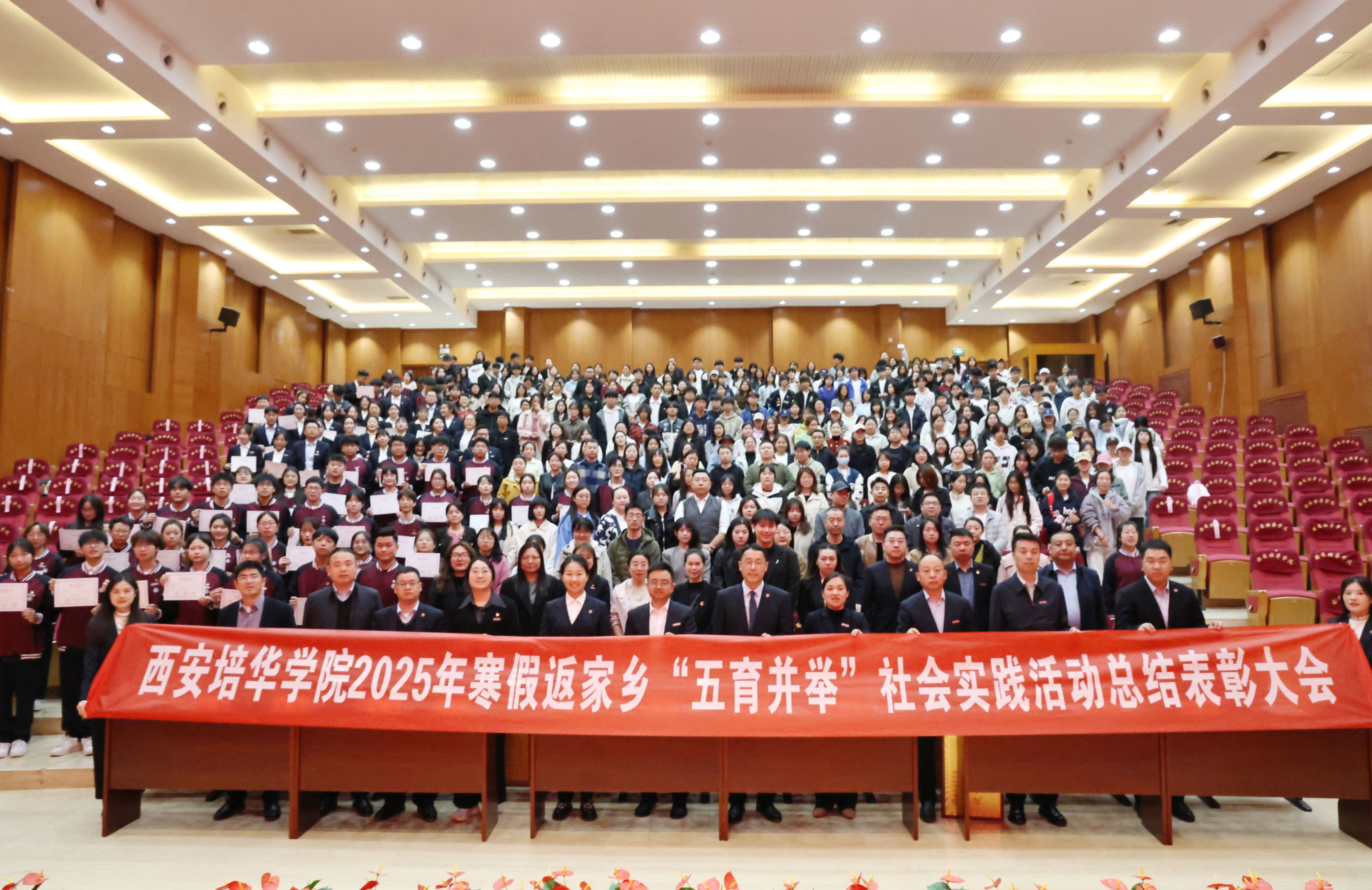 实践是成长最好的课堂,奋斗是青春最美的姿态。4月2日,西安培华学院在图书馆报告厅举行了2025年寒假返家乡“五育并举”系列实践活动总结暨表彰大会。此次活动以“青春献礼祖国,争做五育新人”为主题,引导青年学子将个人成长融入国家战略,在服务基层中厚植家国情怀、锤炼过硬本领。全校学生参与人数达10000余人,编撰成果册7本,活动累计次数达到38413次,育人成效显著,为培养堪当民族复兴大任的时代新人注入强劲动力。