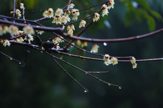 随风而至,滋润万物,无意讨好,唯有奉献。春雨中,万物生长,生命萌发,而腊梅也在雨中“肆意”绽放,洗尽铅华。