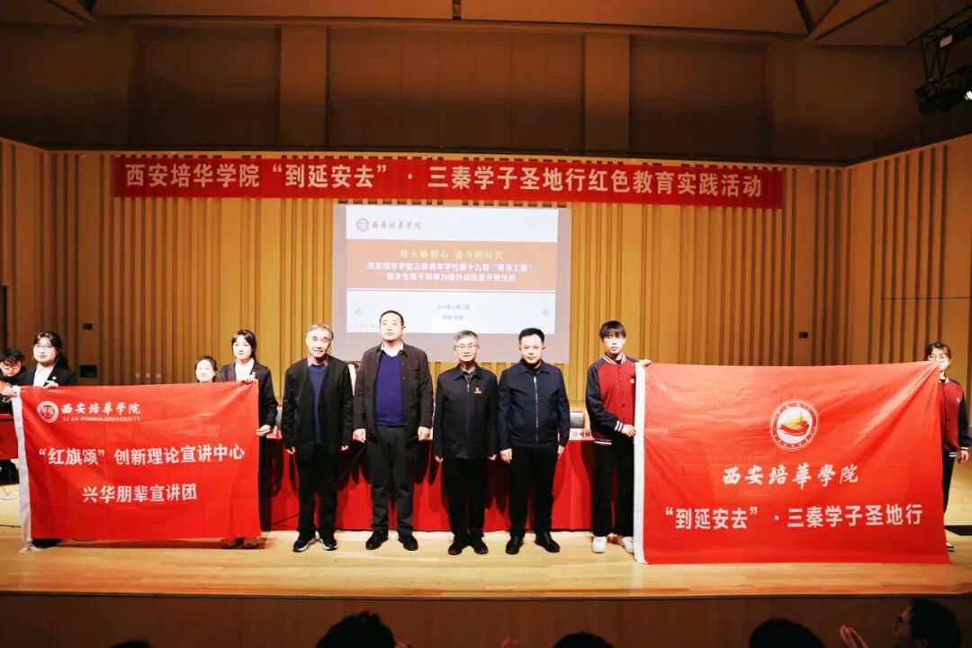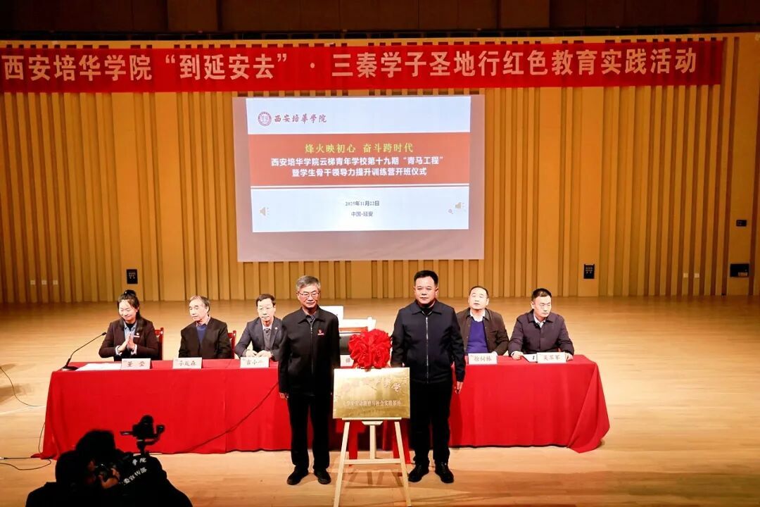 384名师生齐聚延安大剧院,举行西安培华学院云梯青年学校第十九期“青马工程”学生骨干领导力提升训练营暨西安培华学院“到延安去•三秦学子圣地行”红色教育实践研学活动开班仪式。