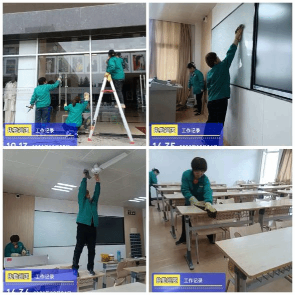 营造洁净环境,迎接师生归来。外围区域,保洁阿姨清扫道路、绿化带,清理落叶杂草及白色垃圾;教学楼内,对教室、走廊、楼梯、卫生间等进行全面清扫消毒,擦拭门窗、拖洗地面,确保环境整洁、通风良好。