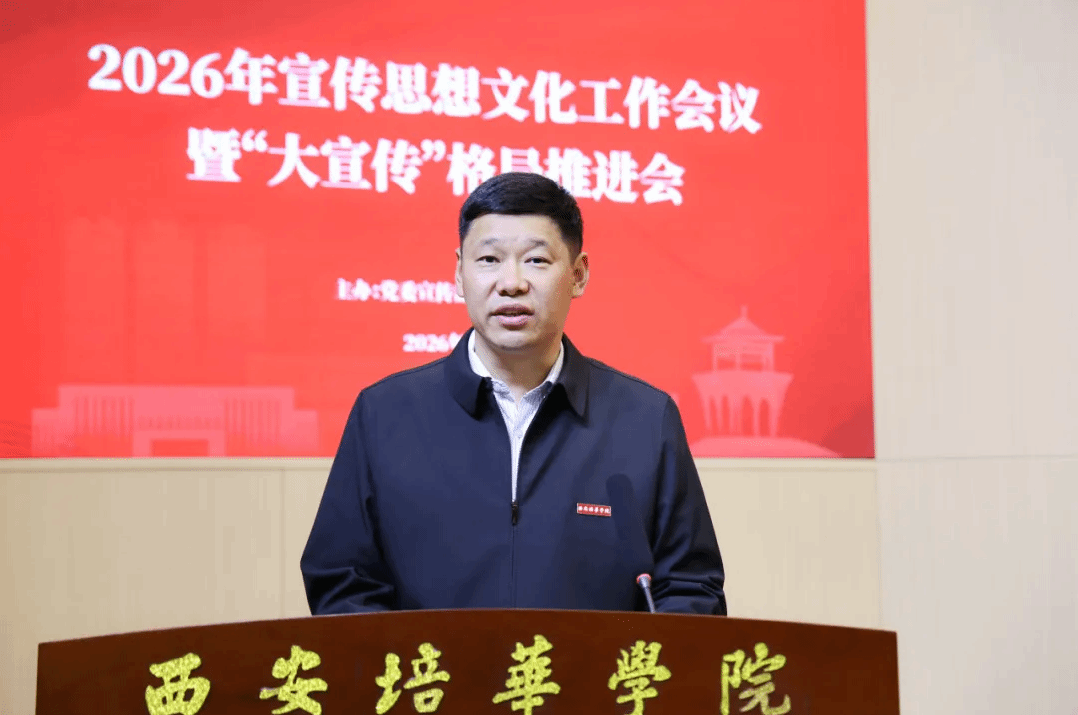 4月10日下午,西安培华学院2026年宣传思想文化工作会议暨“大宣传”格局推进会在长安校区举行。会议旨在深入学习贯彻习近平新时代中国特色社会主义思想和习近平总书记关于教育的重要论述,全面落实全国、全省宣传部长会议精神,分析研究当前宣传思想工作的形势和任务,系统部署2026年重点任务,加快构建全员参与、全域协同、全程发力的“大宣传”工作格局,为学校高质量发展筑牢思想根基、营造良好舆论氛围。