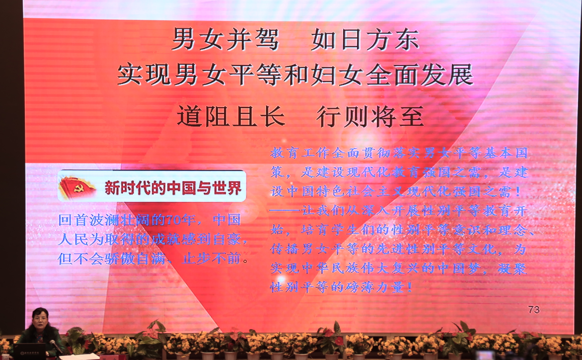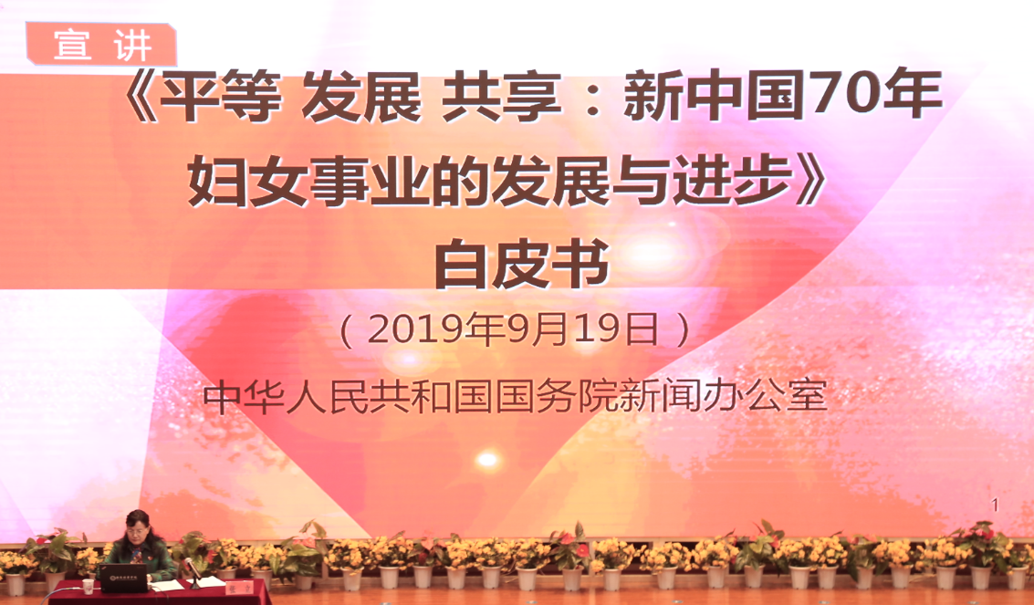 接下来,张立女士为了让我校师生进一步增进国际社会对新中国70年妇女事业发展成就的全面了解,本次宣讲围绕着礼赞新中国70年,国务院新闻办发布了哪些白皮书,1994年以来,国务院新闻办发布了几部妇女事业发展白皮书和发布《平等发展展共享:新中国70年妇女事业的发展与进步》白皮书的重要意义及主要亮点展开。