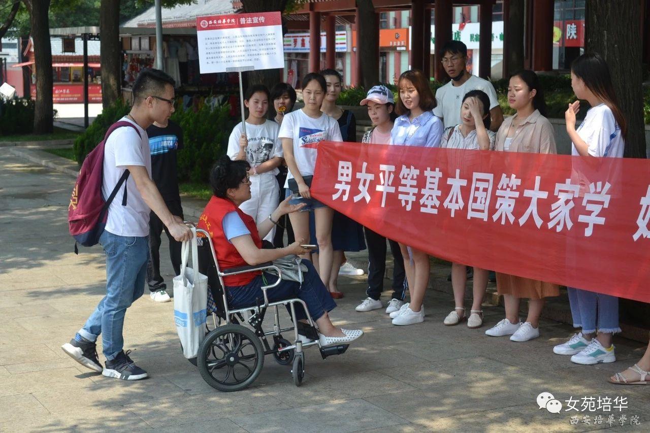 5月16日,为响应国家”男女平等基本国策“的号召,进一步深化基层群众对男女平等基本国策的认识,提升群众生活中的性别意识和社会和谐基础,西安培华学院女子学院在西安市大雁塔广场举办了“男女平等基本国策大家学,妇女权益维护保障进社区”的宣传活动。