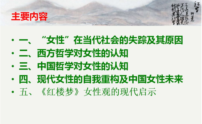 接下来王晓勇博士正式开讲,他分别从五个方面向同学们展示了中西方对女性的认知在哲学层面的差异。