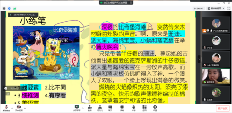 在接下来的语文写作课中,志愿者尹天乐运用可爱的动画元素制作ppt,继续与小朋友们亲切沟通,有趣问答。不仅提高了儿童们的课堂兴趣,也潜移默化地教会了儿童们写作技巧。已多次为小朋友们上课的尹天乐这样说:“通过这两天的支教,我感受到儿童们强烈的求知欲,虽然线上支教会遇到一些问题,但是通过家长与孩子的积极配合,一切都走上了正轨,这也让我对接下来的支教活动充满信心。”