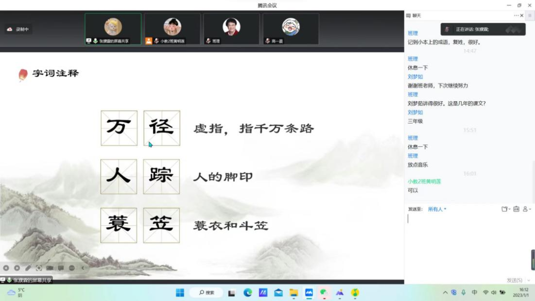 张国菊同学带来清代著名诗人龚自珍《己亥杂诗》的介绍,也有刘梦如同学对文言文的见解与感悟,还有张濮霖同学对《江雪(柳宗元)》这首诗的描绘与感情的书写,当然还有高一晨同学对自己印象中的西安,进行了丰富的介绍以及自己对西安独特的感受。