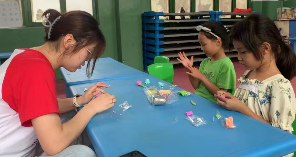 此外,为了培养同学们的创造力和动手能力,志愿者老师们还安排了泡泡泥课程活动,引导同学们发挥丰富的想象力和创造力,培养其探索和表达的能力。通过捏泡泡泥这样一种富有乐趣的手工活动,让他们享受创作的快乐。