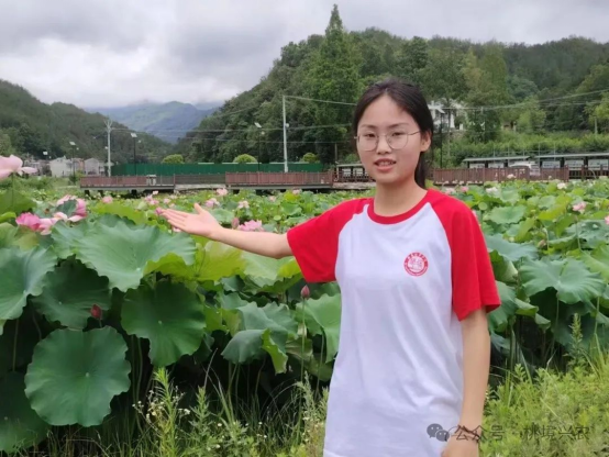 佳节遇佳景,会给我们带来了无限的自然风趣。当我们走进桃花居,印入眼帘的是一池开的正茂盛的荷花,它们以其娇美和清新的芬芳吸引了无数人的目光,傲立于清澈的池塘中,如同一幅幅艺术品,将夏日的美丽展现的淋漓尽致。塘里还有一片片活泼的鱼群,构成了“鱼戏莲叶间”的生动画面。在这里我们与颜书记进行了合照,并宣传了当地的荷花。