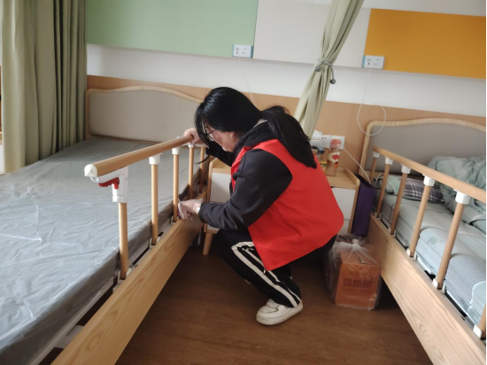 养老院平常的工作也是繁多的,志愿者们也都与工作人员们一起积极投身于劳动之中,首先房间里的床架、柜子、窗台……这些都是老人们平时生活必须回触碰的地方,所以这些地方都会清理多次,以防止有细菌病毒给老人们造成困扰,其次还有楼道外的扶手,老人们大多行动不便,有些在拄拐的同时还会用手扶着栏杆,所以这里也是重中之重,志愿者们听工作人员细细讲解,认真的记下工作内容后就马不停蹄的去拿工具,打扫卫生,志愿者们三三两两相互配合,所到之处都干干净净,焕然一新,夹缝里的灰尘都被带走,不一会儿房间内的设施都擦拭完毕,在活动区内还有几名志愿者认真仔细的清理着柜子,细致又专注,为养老院带来了一道靓丽的风景。大家打扫完后看到劳动成果后都表示很满意。