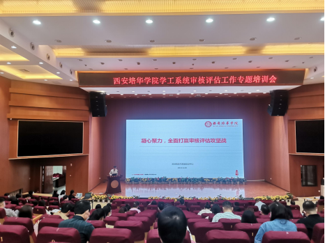 4月26日下午,我校在图书馆报告厅召开了“西安培华学院学工系统审核评估工作专题培训会”,发展规划与质量建设中心主任赵巍对辅导员如何落实审核评估工作进行针对性培训。会议由学工处主持,各二级学院学工系统领导、辅导员等百余人参加培训。