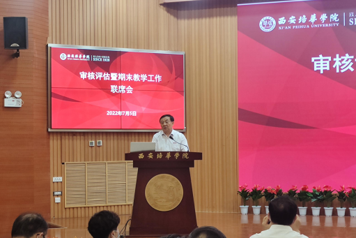 7月5日下午,学校于明德楼四楼报告厅召开了审核评估暨期末教学工作联席会。理事长姜波、校长李映方、常务副校长胡俊生、各二级学院院长及副院长、各职能部门负责人等参加了会议。会议由胡俊生常务副校长主持。