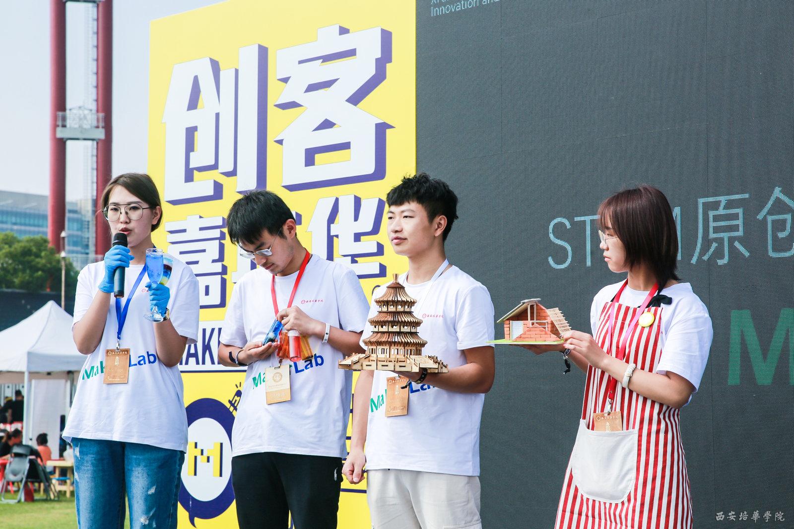 在为期三天的活动中,来自世界各地的参展商、极客、科技与艺术爱好者们在此集结狂欢,见证世界顶尖科技给学习、工作、生活带来的全新改变,在“创客精神”的引领下畅想科技与艺术的未来。我校创客中心旗下创客实验室通过公开招募、答辩选拔程序,经过产品设计、技术设计、展览设计辅导,最终培育并推选医学院药学专业“安神香氛蜡烛”、“食药级中性洗手液”;智能科学与信息工程学院计算机科学与技术专业“三维模型设计制作”;建筑与艺术设计学院建筑学专业“厘米空间模拟建筑搭建”等项目参展。我校学子的专业知识技能、娴熟的操作工艺技术、青春活力的大学生形象,赢得现场参展观众和专业机构的广泛好评。我校创客中心负责人王旭东现场演讲的《数字设计制造实现创造梦想》,以及智能科学与信息工程学院学生徐源奇演讲的《无快乐·不创客》,充分展示了我校创客教育的特色和成果,获得众多企业、机构的关注与合作洽谈。