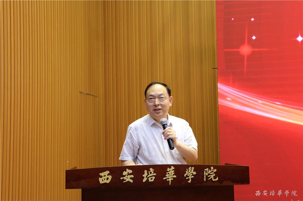 颁奖仪式后,西安培华学院副校长于国亮教授讲话。他讲到,“互联网+”大学生创新创业大赛自2015年举办以来,已经成为我国覆盖面最广、影响力最大的大学生创新创业盛会,受到党和国家领导人的高度重视。近年来,我校高度重视互联网+大赛的组织工作,取得了一定成绩。在近四届大赛中,我校在陕西省赛区中荣获金奖3项,银奖4项,铜奖22项的成绩,学校曾两次荣获最佳组织单位。作为一名培华人,我们要牢记 “自强不息,开拓前进”的校训,我们要发扬培华人艰苦奋斗的创业精神,我们要不忘初心,砥砺前行。