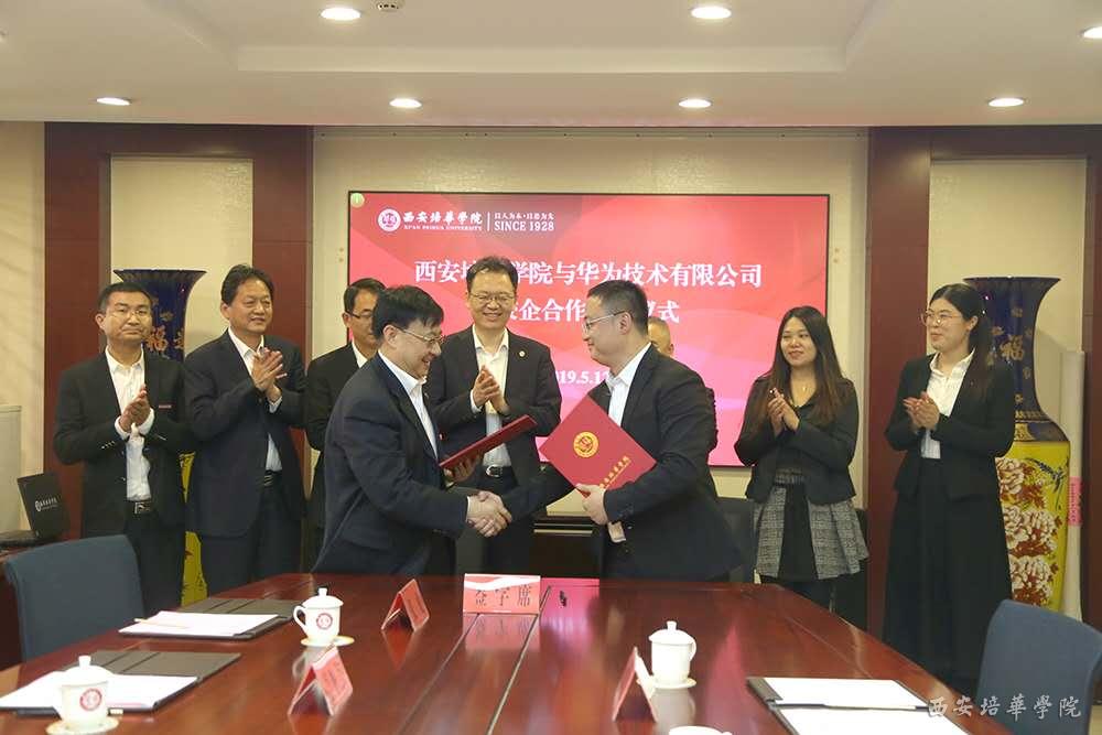 5月12日,西安培华学院与华为技术有限公司校企合作签约仪式在长安校区举行。华为中国地区部副总裁雷战奎,华为陕西政企业务部副总经理石艳东,学校理事长姜波、校长李映方以及双方相关领导和代表出席了签约仪式。