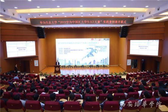 4月27日,由华为技术有限公司主办,深圳讯方技术有限公司赞助,西安培华学院承办的2019华为中国区大学生ICT大赛陕西赛区初赛在我校举行。共有来自省内30余所高校、400余名学生参加了此次大赛。华为陕西代表处副总经理穆成山、深圳市讯方技术股份有限公司校企合作总经理刘铭皓、西安培华学院理事长姜波等领导出席了大赛开幕式。