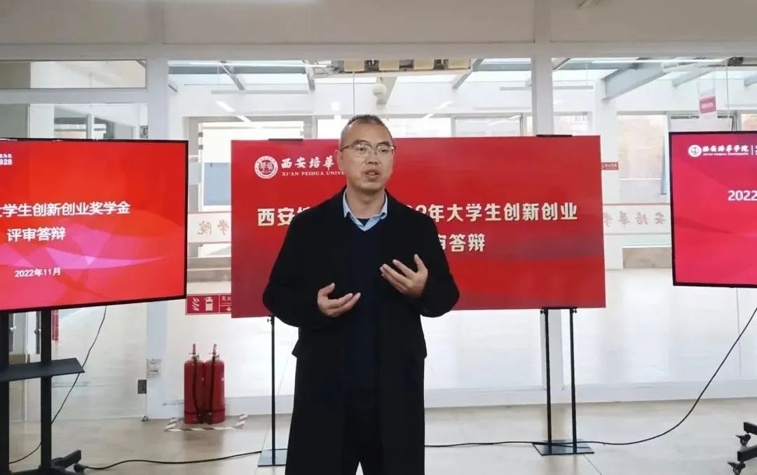 为进一步深化学校创新创业教育改革,激发学生创新意识,培养学生创业精神,树立典型,引导、鼓励和支持在校大学生开展创新创业实践,根据《西安培华学院大学生创新创业奖学金评选办法》,学校于11月23日在创客中心举办了“西安培华学院2022年度创新创业奖学金评审答辩会”。奖学金候选人就创新创业成果、示范带动效应、团队建设等方面进行了充分汇报。