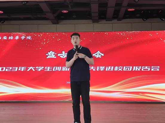 为贯彻落实习近平总书记给中国“互联网+”大学生创新创业大赛“青年红色筑梦之旅”大学生的重要回信精神,营造大学生创新创业氛围,推动大学生投身创新创业实践,4月26日,学校开展了2023年大学生创新创业先锋进校园报告会活动,报告会由教务管理中心副主任刘斌主持。