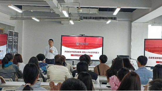 培训交流会上,王旭东老师首先从基地申报情况、建设背景、任务目标和建设进度做了回顾和介绍。来自西安电子科技大学国家级创新创业学院的刘毅老师从学校建设发展的历程切入,系统分析创新创业概念提出和实践意义,提出探索双创教育2.0的全新基层组织建设模式的思路,分享了以高水平科学研究带动学生创新实践能力培养、坚持“学术带头人主导、责任教师牵头、面向全体学生”的理念,阐述汇聚“教育、科技、人才”三要素集合载体的“俱乐部”式创新创业实践平台模式,分析了坚持产教融合、赛创融合,充分挖掘产业端、赛事端资源,以项目制学习引导学生聚焦解决实际问题开展创新实践的正向反馈。最后,刘毅老师围绕培育建立科技创新俱乐部在创新创业组织建设、项目实践和人才培养方面典型经验进行分享,吸引与会师生的广泛兴趣,持续进行现场提问并交流互动。