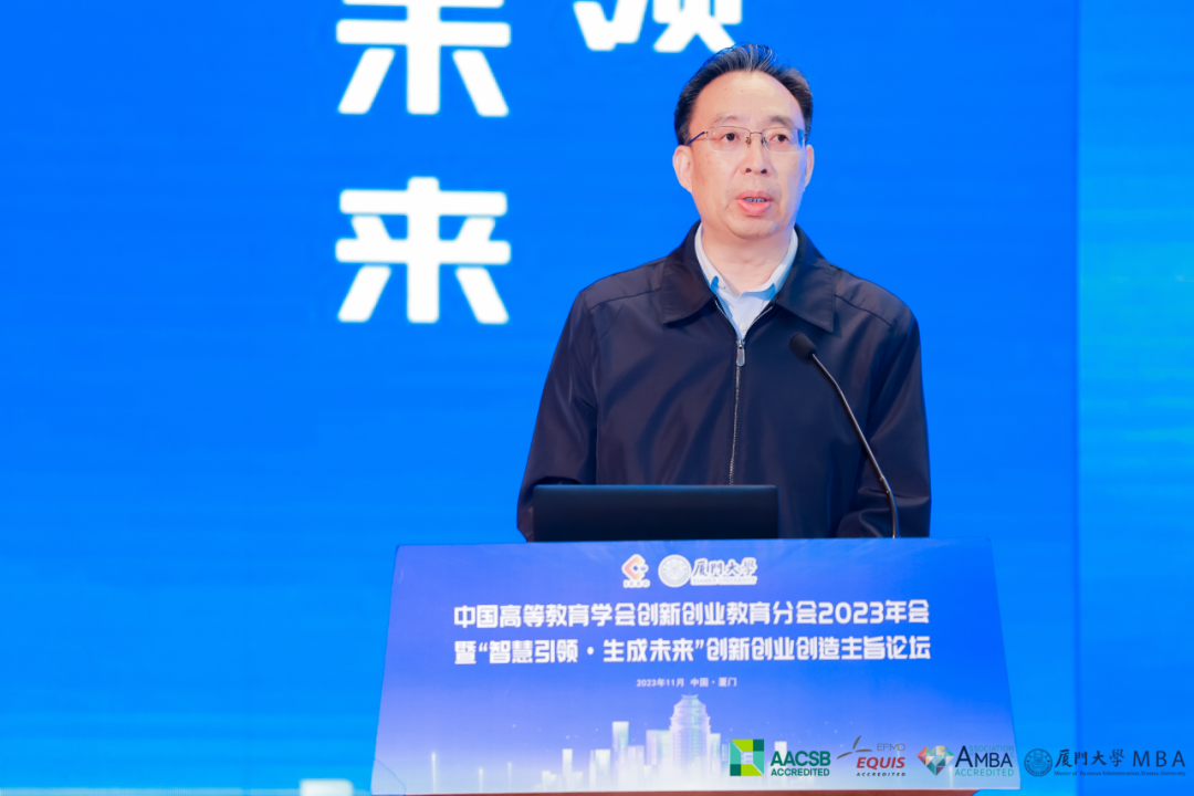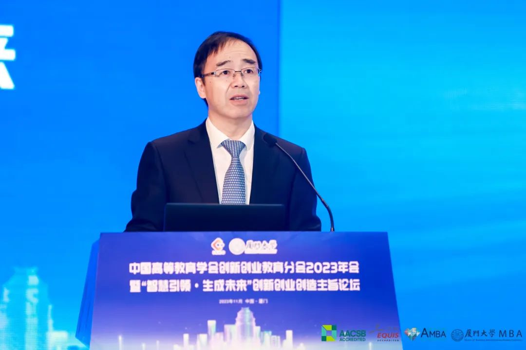 2023年11月3日-5日,中国高等教育学会创新创业教育分会(以下简称“分会”)2023年年会暨“智慧引领 生成未来”创新创业创造主旨论坛在厦门成功举行。会议由分会和厦门大学共同主办,由上海财经大学、西北农林科技大学、东北大学、广西师范大学、温州大学、唐山工业职业技术学院、宁波职业技术学院、厦门大学管理学院、新未来在线(北京)教育科技有限公司联合承办。分会副理事长符惠明、黄贵洲、李东、李俊峰、刘铸、王增国、邬小撑、杨芳、张建军、张玉利、张竹筠,秘书长刘志阳,监事黎开谊、赵旭,分会437家会员单位代表以及专家学者、企业高管和师生近千名现场参会。