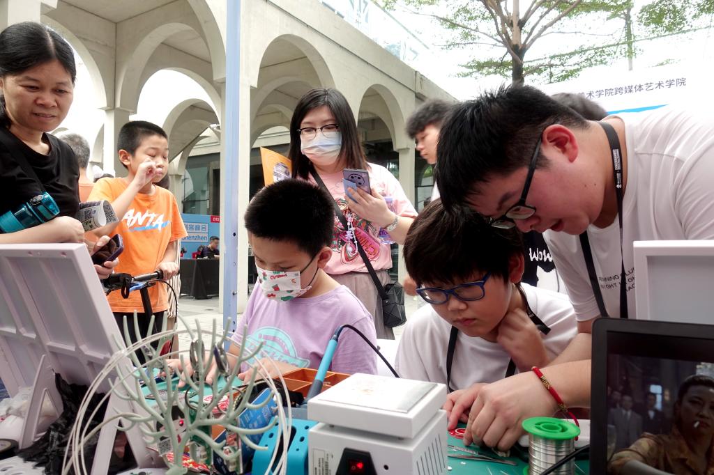 近日,2023大湾区国际创客峰会暨Maker Faire Shenzhen在深圳市南山区万科云设计公社成功举办。我校创客中心作为高校代表受邀参会,创客中心负责人王旭东、创客中心开放创造实验室指导教师党雄虎及学校电子协会、软件协会、全国大学生科技志愿服务示范团队“蒲公英”科普志愿服务队学生代表肖佳毅、包翊成、冯俊祥等参展。