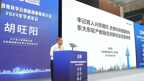胡旺阳作《牢记育人兴邦嘱托,承担科技报国使命,东大东软产教融合创新创业实践探索》主旨报告
