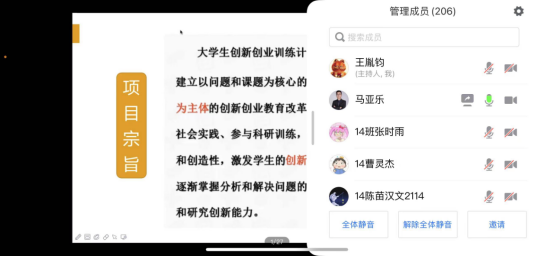 本次培训因为近期防疫要求,虽然采取了线上培训的形式,但并没有影响同学们的参与热情,共有200余名项目负责同学参加了培训。马老师在一个小时的培训中,完整、全面地给同学们介绍了《大学生创新创业训练项目》的来源、并从项目选题、申报流程、申报书撰写要求等方面对如何申报项目进行了讲解。在培训过程中马老师积极与同学互动,解答同学们提出的问题。